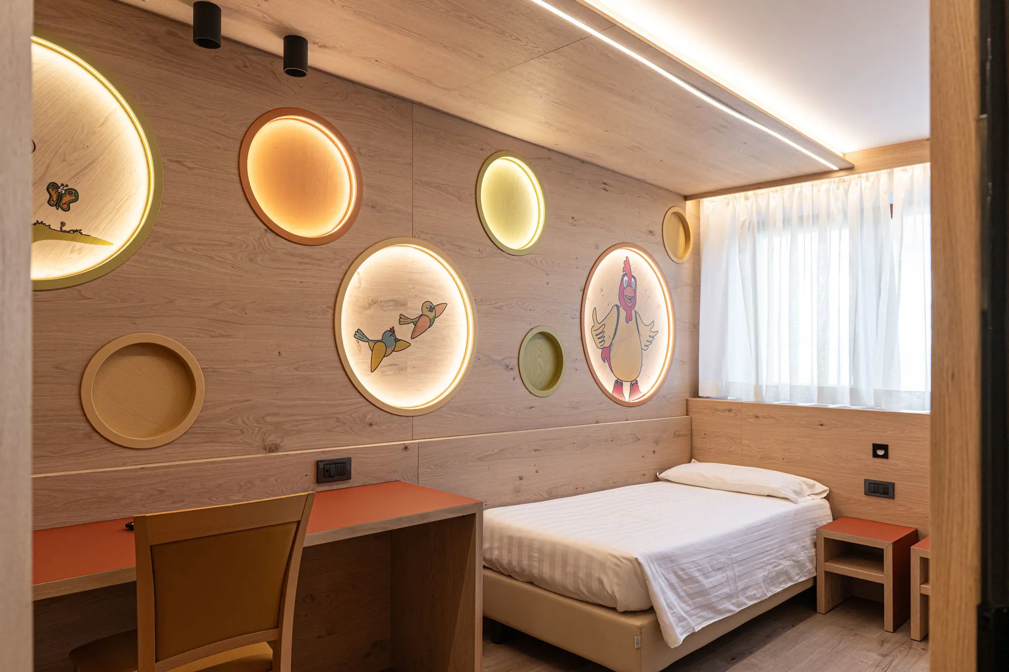 Una zona tematica per bambini, con mobili ed elementi unici, che sanno attirare la simpatia dei più piccoli.